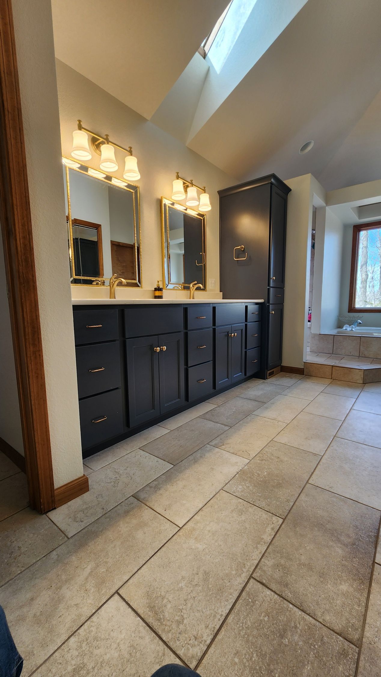 - Flooring: Carpet was replaced with large-format tile for a durable, water-resistant, and visually seamless finish.